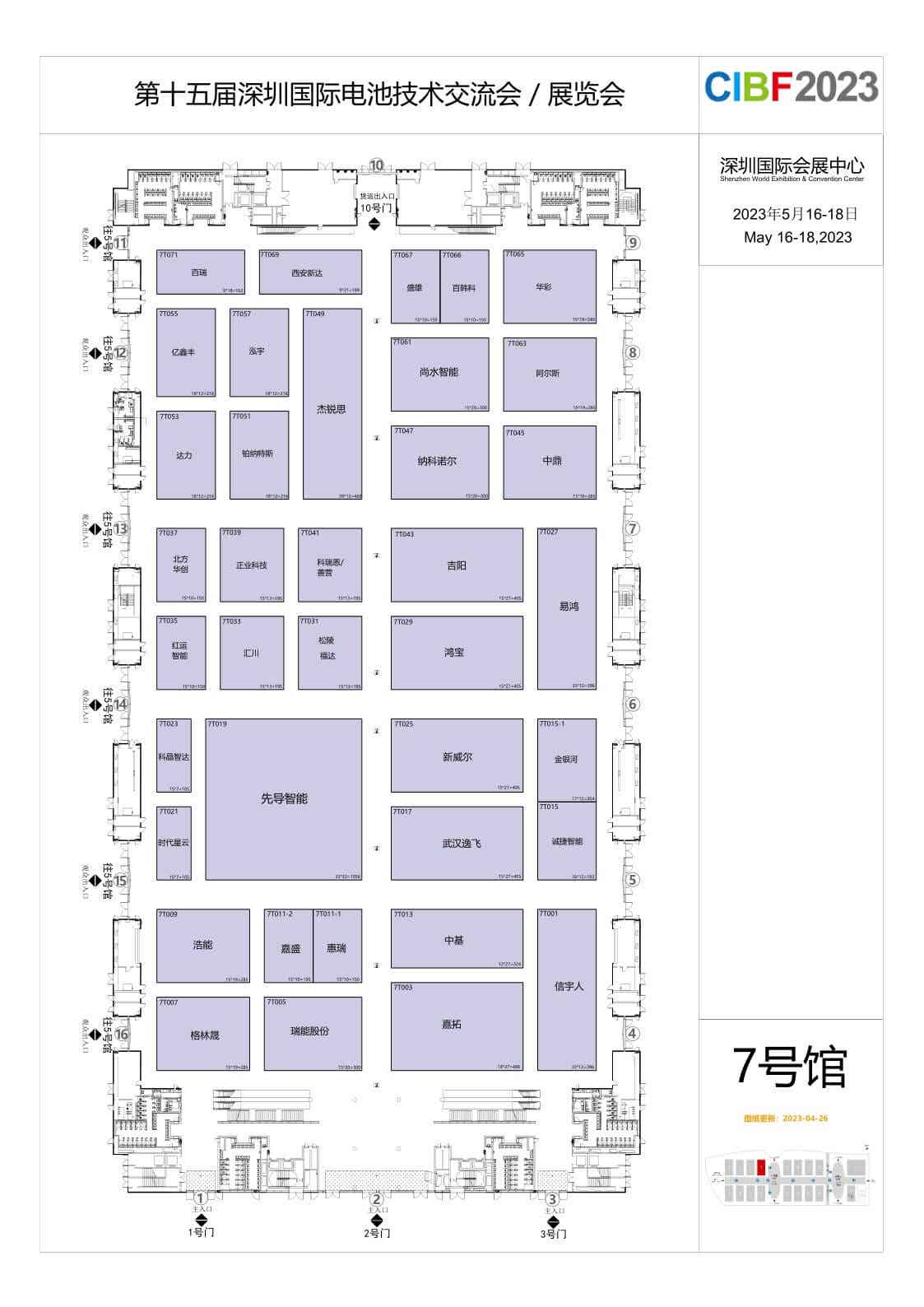 CIBF2023深圳国际电池展7号馆展位布局图